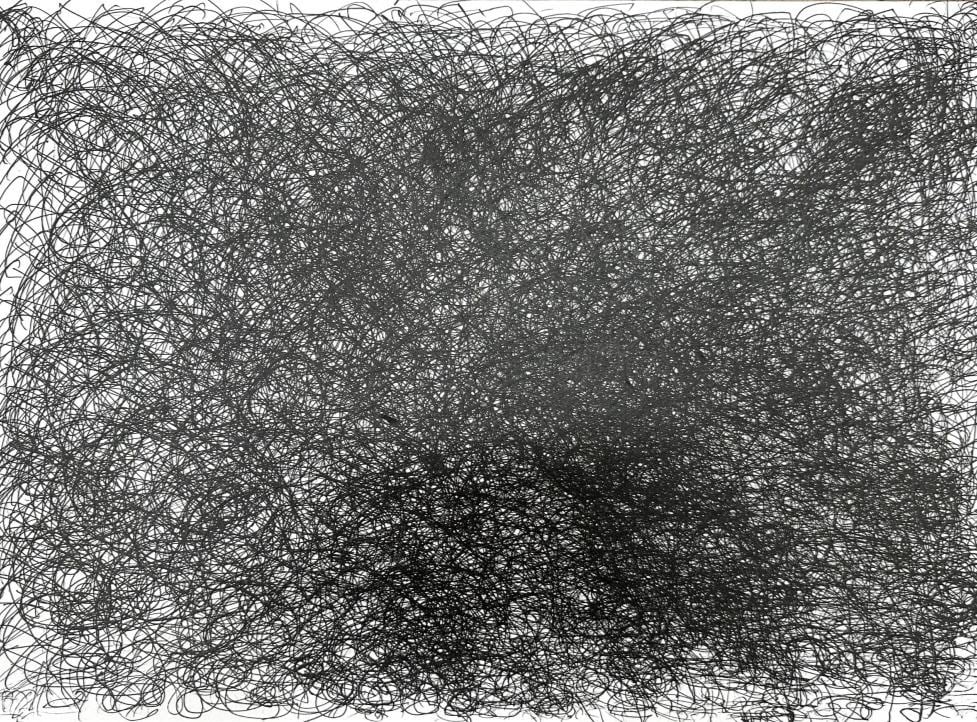 スポーツ観戦が好きな彼は野球選手の名前の一文字を画用紙に何度も何度も書き重ねていく。幾重にも連なった無数の文字は、試合さながらの躍動感に満ちた力強さを感じさせる。家族、仲間はもちろん、来客者、野球選手、決まって作り上げる作品は彼の大好きな「人」。これからもまた出会いの数だけ作品も創作意欲も増していく。