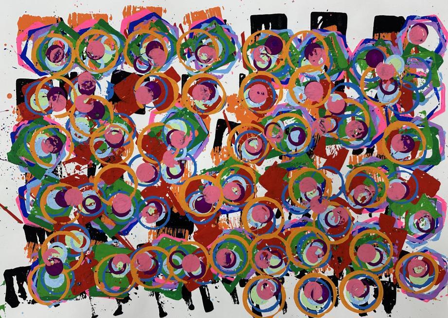 白黒・色とりどり、緻密・勢い、密・余白、様々な個が集まり、強いエネルギーが生まれた場となっています。寒い冬の時期に原画作品をゆっくりご覧いただき、温かな気持ちに、そしてこの無垢なエネルギーを受け取って何かを感じて頂けたらと思います。