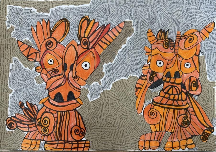 【材質】紙、油性ペン、色鉛筆、新聞紙