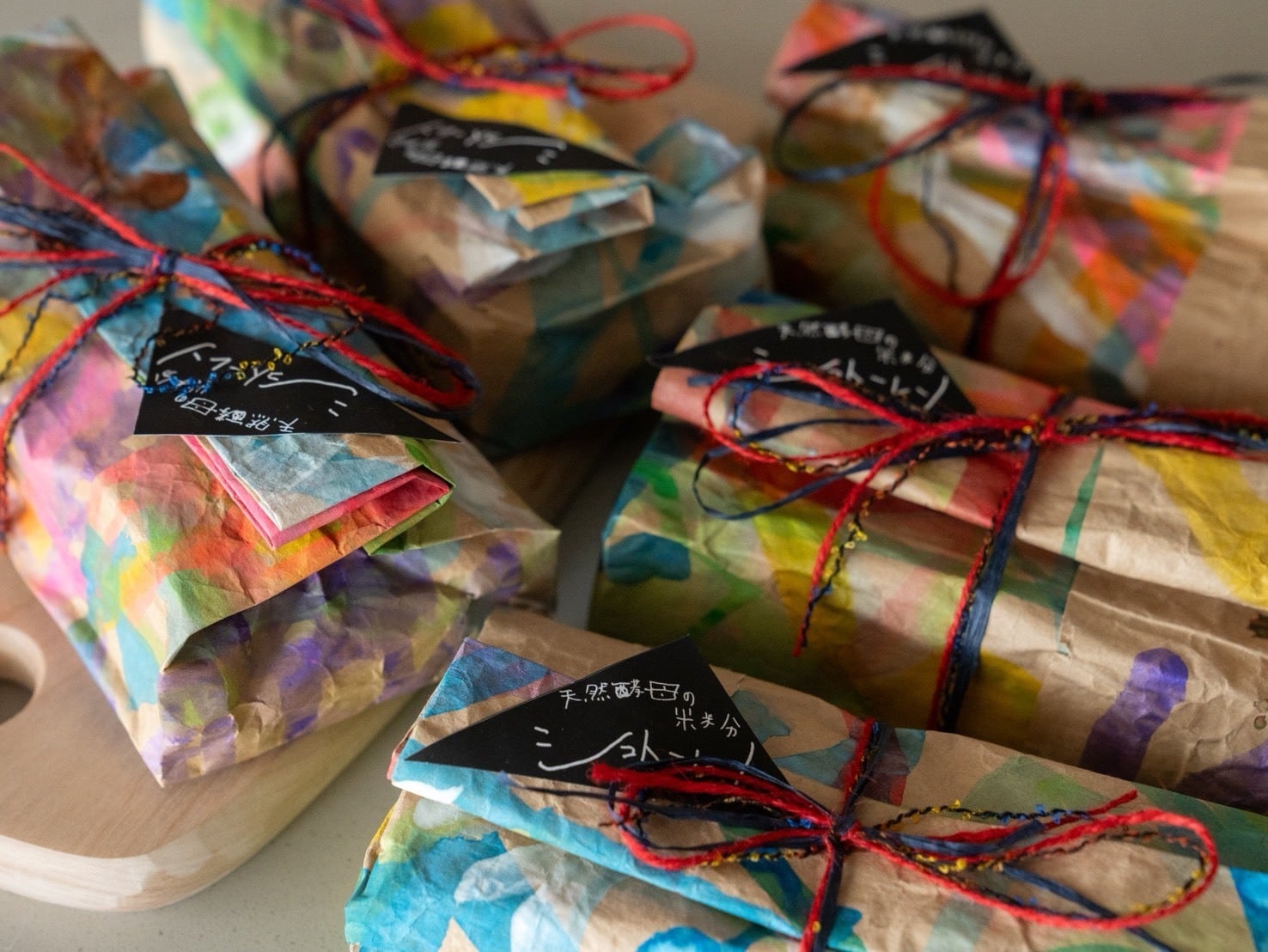 一枚一枚、蓬莱の家の利用者さんの手でペイントされた、世界にひとつだけのオリジナルパッケージに包んでお届けします。